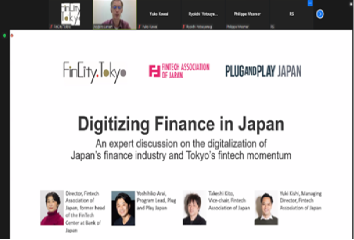 9月29日(木)に実施した会では、FinCity.Tokyoアンバサダーの河合祐子氏、一般社団法人Fintech協会の鬼頭武嗣氏、貴志優紀氏、ならびにPlug and Play Japan社の荒井良史彦氏といったフィンテック部門の最先端の知見を有するゲストが登壇しました。