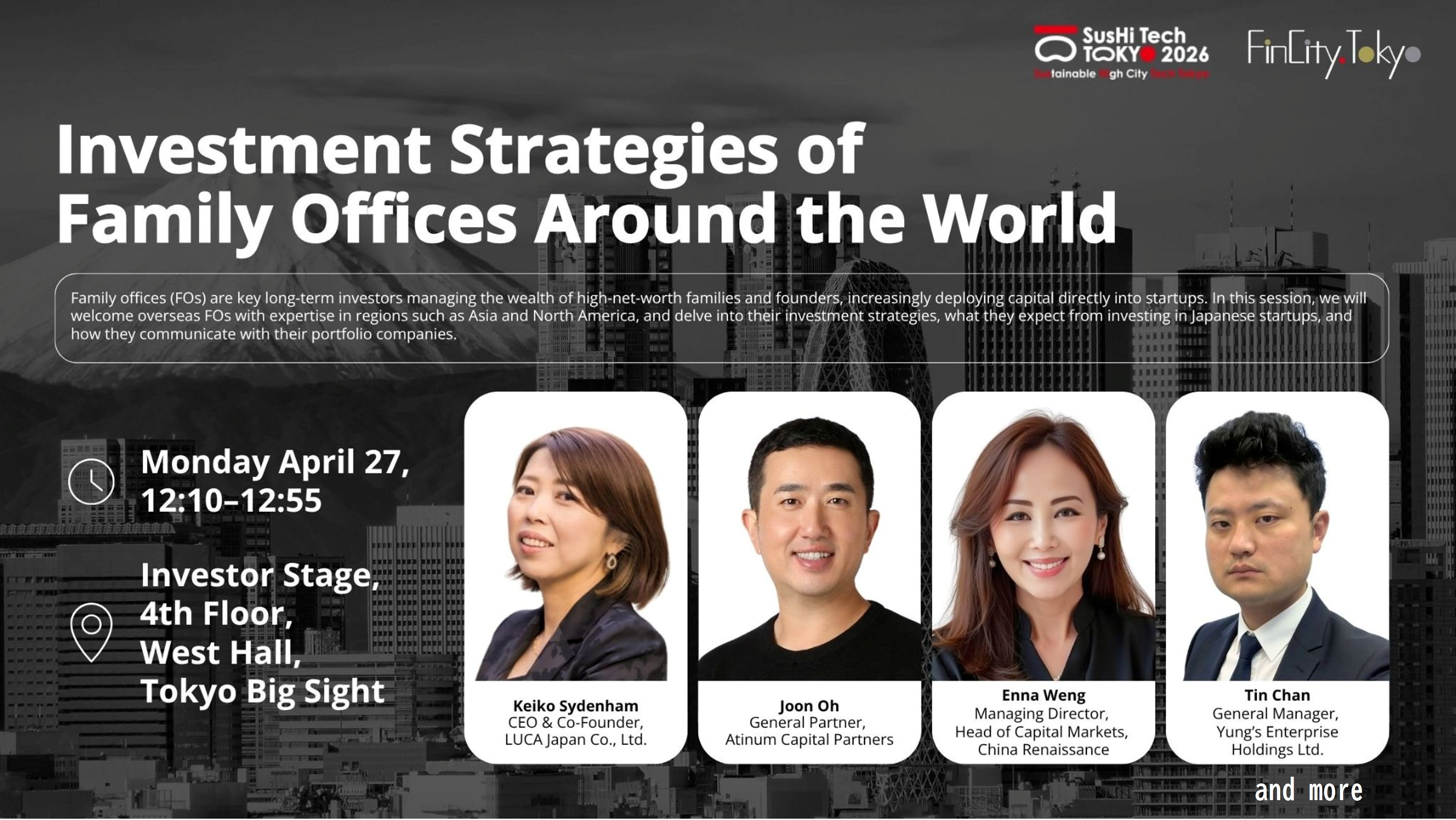 ファミリーオフィス(FO)は、富裕層・創業家・一族の資産を管理・運用する組織であり、中長期的な視点でスタートアップにも直接投資を行う重要なプレーヤーです。本セッションではアジア・北米等に知見をもつ海外FOを招き、FOの投資戦略の紹介と、日本のスタートアップ(SU)投資に何を期待しているのか、投資先とのコミュニケーションはどのように行うのかを深堀りします。