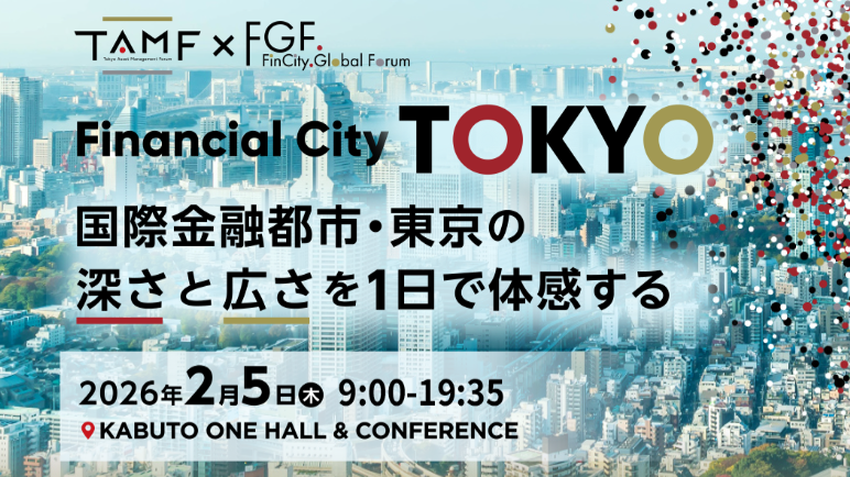 変動する国内外の環境の中にあっても、国際金融都市・東京は投資家に注目されている。2026年はどうなるか? 東京の金融エコシステムの継続的な進化、日本の資産管理分野の発展、外国人投資家向けの機会創出を目指す、FinCity.Tokyo恒例の「Tokyo Asset Management Forum 2026」(TAMF)及び「FinCity Global Forum 2026」(FGF)にご招待します。