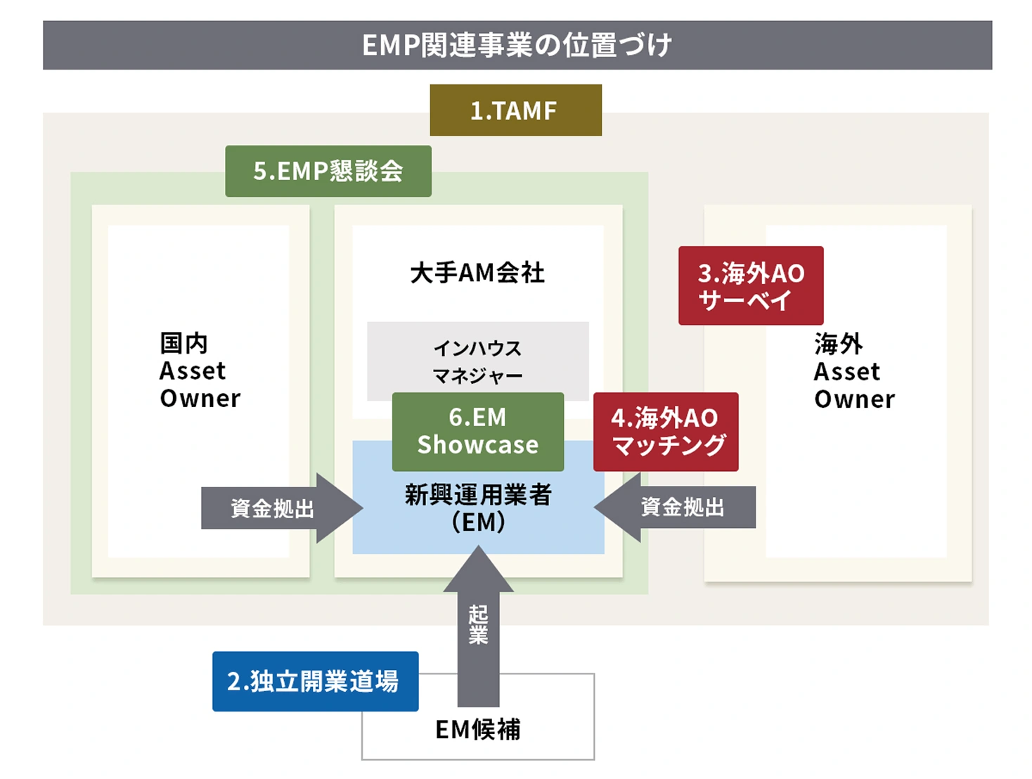 Emerging Managers Program(EMP) 新興資産運用業者(EM)の市場参入を促進し、国内資産運用業の多様化・高度化を目指す取り組みです。